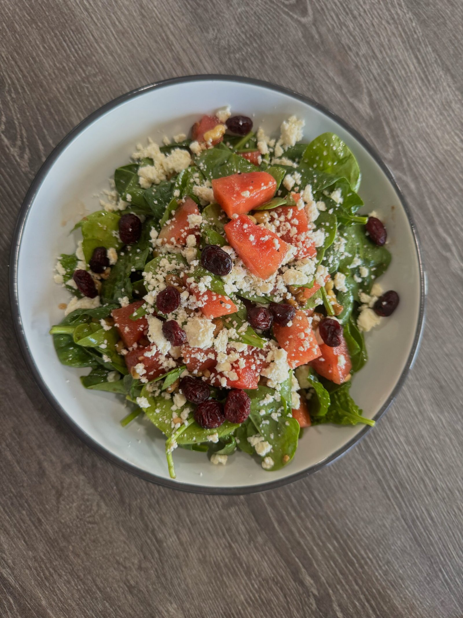 Spinach, roasted beets, feta cheese, dried cranberries & walnuts